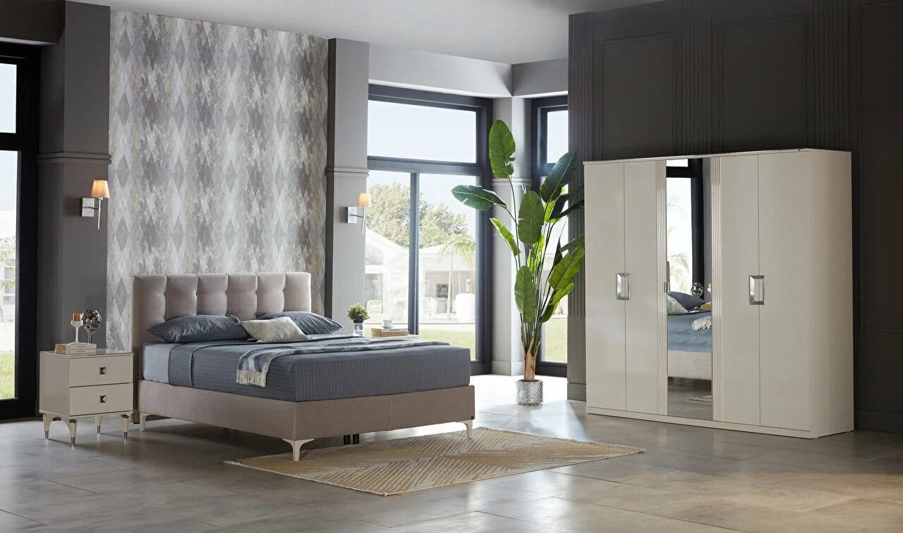 Modern tasarımı zarif krem detaylarla buluşturan Perissa Yatak Odası Takımı, yatak odanıza lüks bir dokunuş katıyor. Yüksek kalite malzemesi ve işçiliğiyle uzun yıllar şıklığından ödün vermeyen Perissa serisi, geniş iç hacimli gardırobu, konforlu başlığı ve şık komodinleriyle yaşam alanınıza hem estetik hem de işlevsellik kazandırıyor.